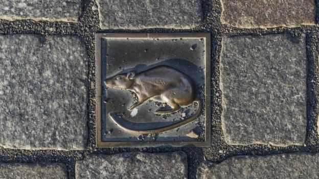 Siguiendo las notas hipnóticas de la flauta mágica, los roedores desfilaron cortésmente a través de las puertas de la ciudad hacia su presunta perdición.