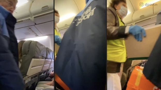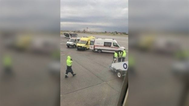 Los pasajeros con los que hablamos creen que los médicos pasaron entre 15 y 20 minutos examinando al Sr. Navalny a bordo del avión.
