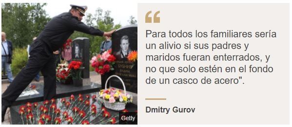 "Para todos los familiares sería un alivio si sus padres y maridos fueran enterrados, y no que solo estén en el fondo de un casco de acero", dice el hijo de Gurov, Dimitri.