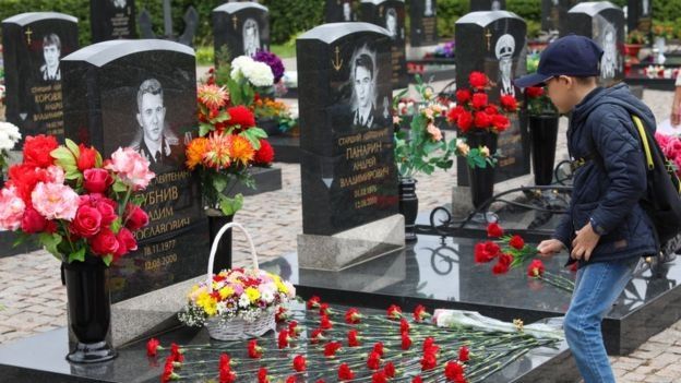 Pero cada dos días, Raisa Lappa, de 83 años, coloca tres rosas o gladiolos junto a la placa a su hijo Sergei en su ciudad natal, Rubtsovsk, como si no se hubiera hundido con su submarino durante una desafortunada operación de remolque en el océano Ártico en 2003.
