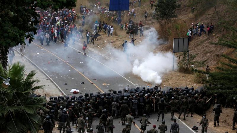 La policía antidisturbios y el ejército de Guatemala dispararon este domingo gases lacrimógenos y golpearon con palos a los integrantes de una caravana de miles de migrantes centroamericanos que se dirige a Estados Unidos.