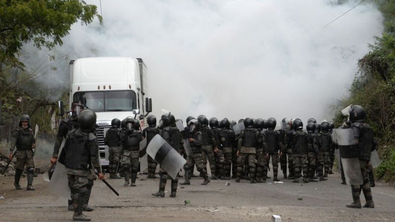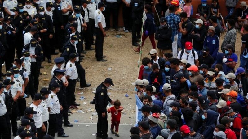 Un día antes, miles de soldados y policías ya habían impedido el paso con palos y gas lacrimógeno al multitudinario grupo, en su mayoría hondureños, que trataban de llegar a Estados Unidos con la esperanza de que el próximo gobierno de Joe Biden flexibilice su política migratoria