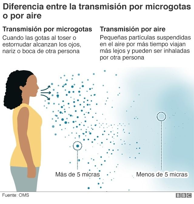 La persona infectada también liberará partículas más pequeñas llamadas aerosoles.