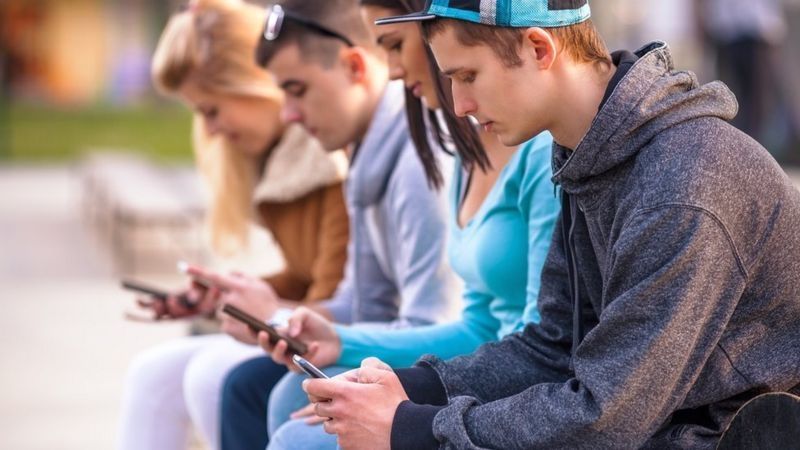 Andaba un día paseando por la calle con mi compañero de física, porque en nuestro instituto no tenemos patio, y los alumnos estaban en pequeños grupos con sus celulares.