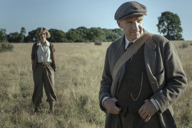 Sus estrellas, Ralph Fiennes y Carey Mulligan, interpretan respectivamente al arqueólogo autodidacta Brown y a Edith Pretty, la terrateniente que lo contrató para excavar los misteriosos túmulos [montículos funerarios] en su finca de Sutton Hoo, con vistas al río Deben, en Suffolk.