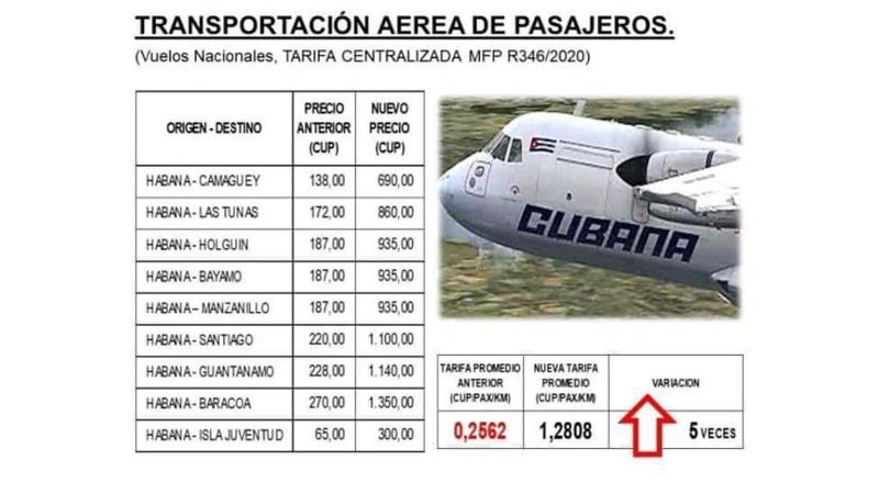 - Un boleto de avión que antes costaba 270 pesos cubanos (cerca de US$10), ahora cuesta 1.350 (US$57)