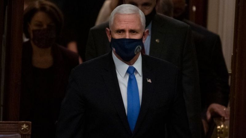 En primer lugar, antes de que comenzara la sesión, el vicepresidente Pence difundió un comunicado en el que explicaba que no tenía autoridad para rechazar unilateralmente los votos del Colegio Electoral.