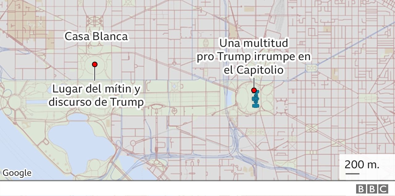 Rápidamente, las miradas se pusieron en Trump, quien antes de la marcha hacia el Capitolio había pronunciado un incendiario discurso en el que insistió, sin pruebas, en que las elecciones de noviembre fueron un robo.
