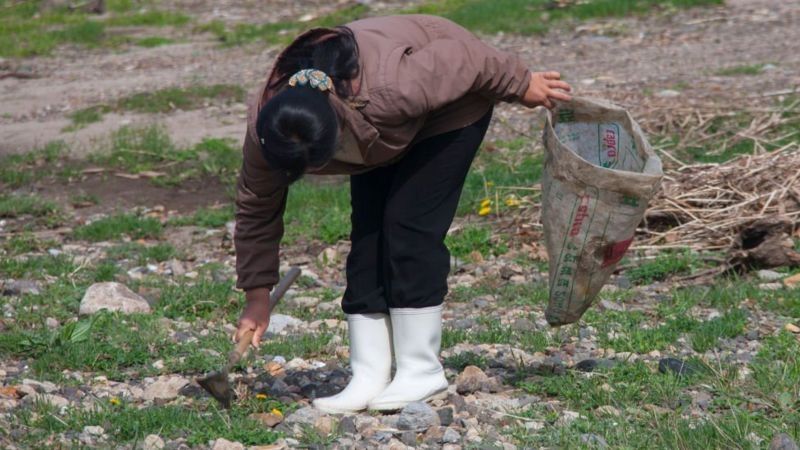 Una mujer recoge hierba para comer en la provincia de Hamgyong del Norte en 2010.