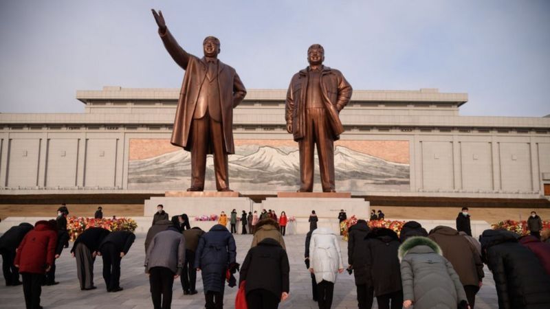 Las estatuas de los líderes Kim Il-sung y Kim Jong-il son objeto de veneración en Pyongyang.