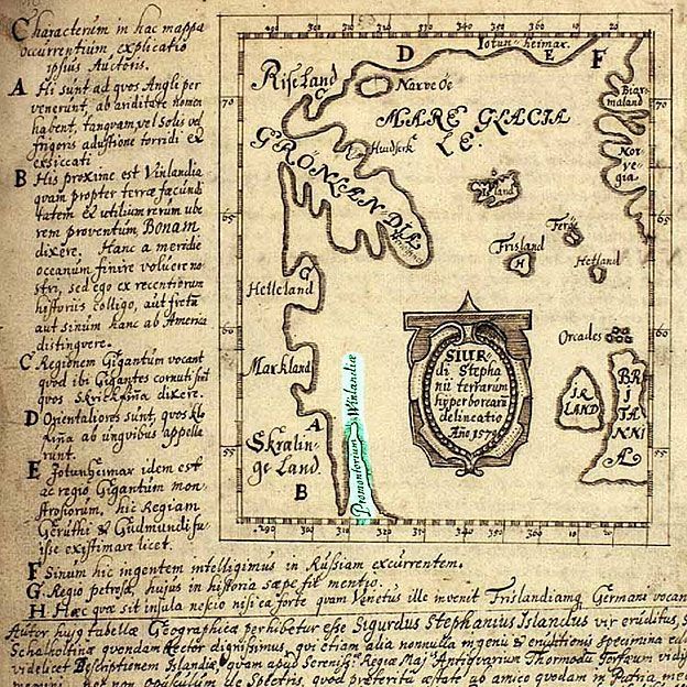 El mapa hecho por Sigurd Stefansson, maestro de escuela en Skálholt, Islandia alrededor de 1570.