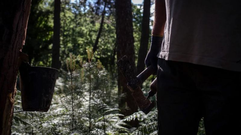 "Somos pocos. La gente todavía se sorprende cuando nos ve resinando los pinos. Creen que somos algo del pasado. Pero no entienden que el futuro de estas áreas (está conectado a) la resina", dijo.