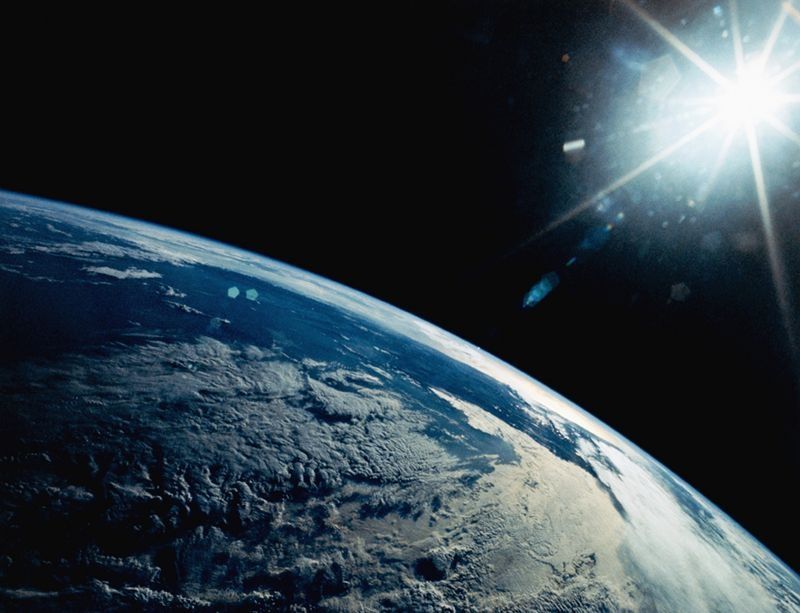 En cambio, cuando los rayos del Sol pasan a través de la atmósfera terrestre, algunas moléculas en el aire distorsionan los fotones de ondas más cortas, haciendo que nos lleguen antes los de ondas más largas.