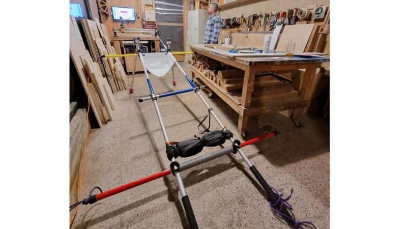 Para el viaje de 2011 adaptaron una silla de ruedas y le pusieron esquís.