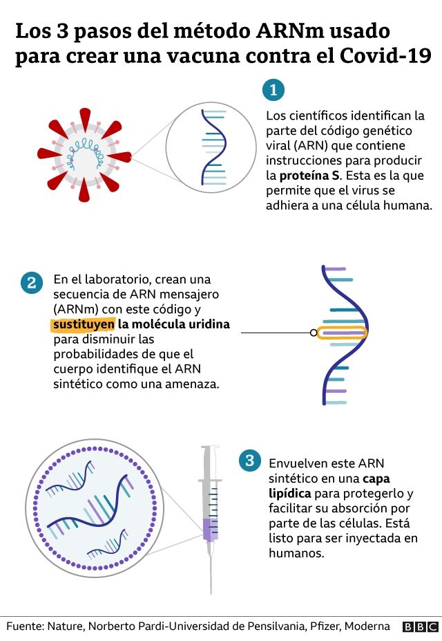 Ella se refiere específicamente a las vacunas de ARNmensajero de Moderna y Pfizer, que usan un pequeño fragmento del código genético del virus.