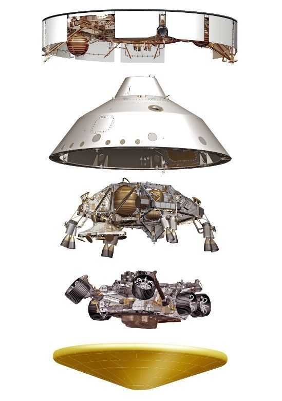 La nave donde está el robot tiene una parte trasera en forma de cono que está sellada en la parte inferior por un escudo térmico. La temperatura en la superficie externa de ese escudo puede alcanzar cerca de 1.300 grados centígrados.
