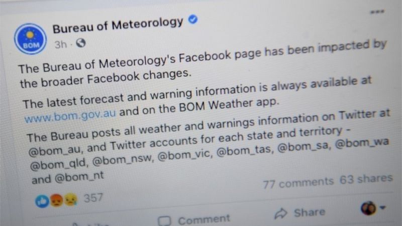 Facebook dijo que la legislación los había dejado "frente a una dura elección: intentar cumplir con una ley que ignora las realidades de esta relación o dejar de permitir contenido de noticias en nuestros servicios en Australia".