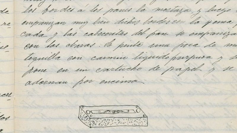 Otras están rigurosamente detalladas, con planificación de comidas, preparativos en la cocina e incluso -como en el caso del manuscrito de Hortensia Volante de 1916- una ilustración de cómo glasear un pastel.