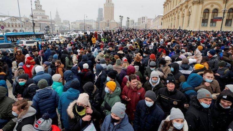 Miles de moscovitas salieron a las calles apoyando a Navalny.