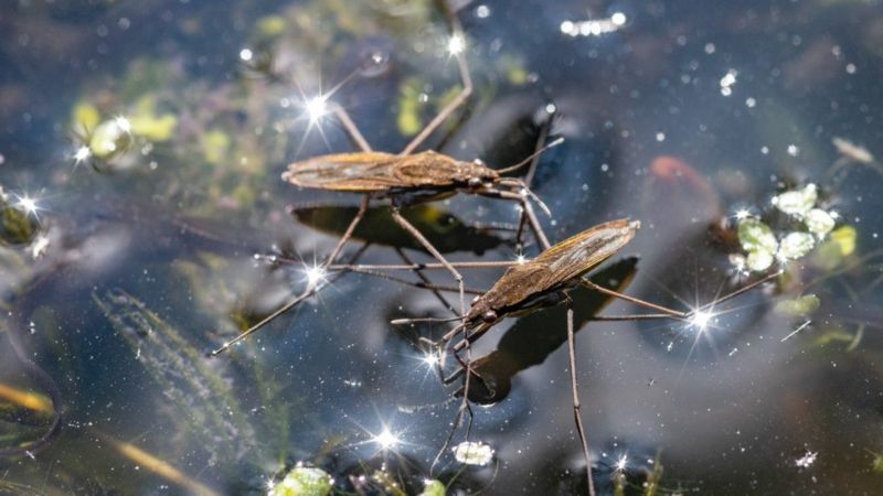 La "fuerza" (enlace de hidrógeno) que permite al zapatero (Gerris lacustris) andar sobre el agua es la misma que hace posible que un virus infecte una célula. Cambios en ésta fuerza condicionan la infectividad viral.