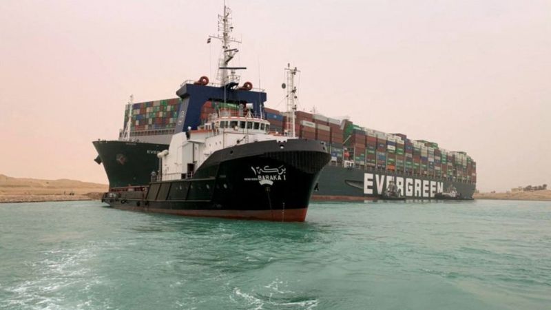 El buque Ever Given (de la empresa Evergreen) está atascado desde el martes en el Canal de Suez, impidiendo el flujo habitual de navíos por el mismo.