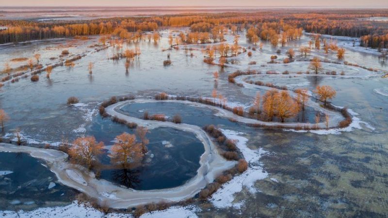 Nadie puede señalar exactamente qué día llegará, pero este fenómeno anual aparece sin fallar entre marzo y abril, trayendo inundaciones que redefinen el parque nacional como una cuenca anegada, con casas sumergidas, manzanos hundidos y pantanos elevados.