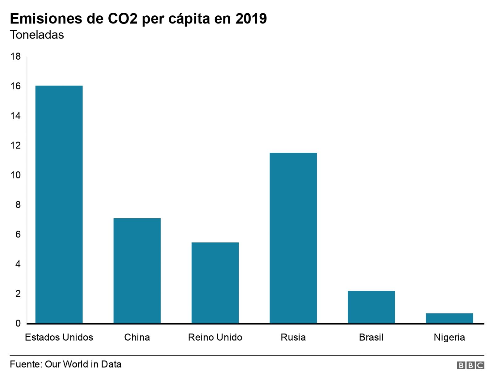 Y es que, pese a que China se sitúa actualmente como el primer país del mundo en emisiones de CO2 y el segundo, Estados Unidos, representa menos del 15% del total mundial, históricamente EE.UU. ha emitido más que cualquier otro país hasta la fecha, más del doble que China.