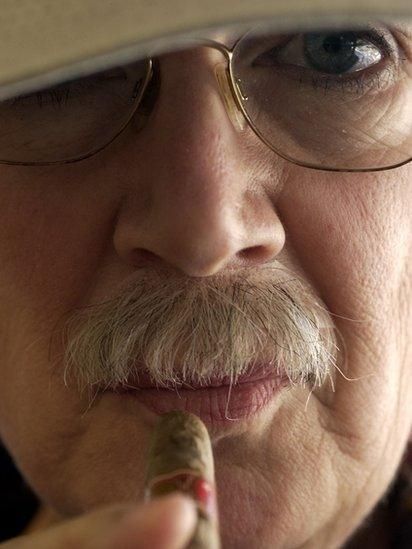 Tenía que envejecerlo y lo logré. Le eché talco para los pies en el pelo. Le puse el pelo muy gris, le puse un bigote, le borré la desfiguración y le puse unos lentes que se veían únicos.