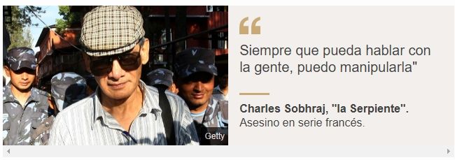 Entrevistado por el biógrafo Richard Neville, autor de Life and Crimes of Charles Sobhraj (La vida y los crímenes de Charles Sobhraj), el asesino en serie confesó: "Siempre que pueda hablar con la gente, puedo manipularla".