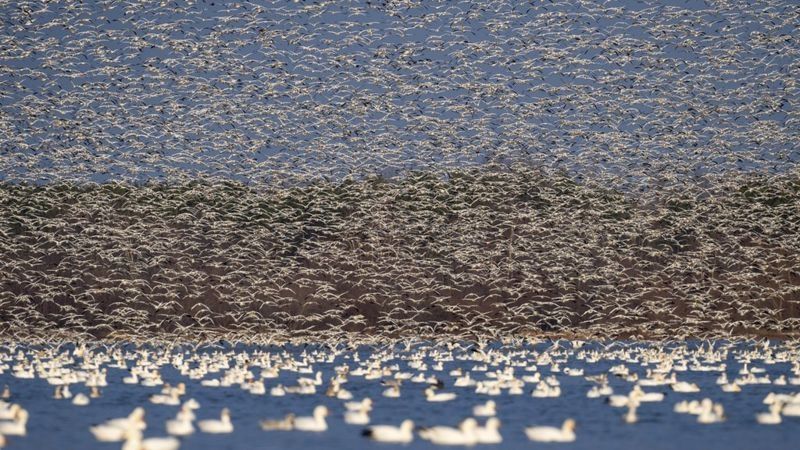 "También los gansos de nieve canadienses, generalmente los jóvenes, que lo hacen justo antes de migrar en el invierno, cuando van al sur y tienen un largo camino por recorrer. Limpian sus sistemas antes de pasar este largo y estresante período sin poder alimentarse".