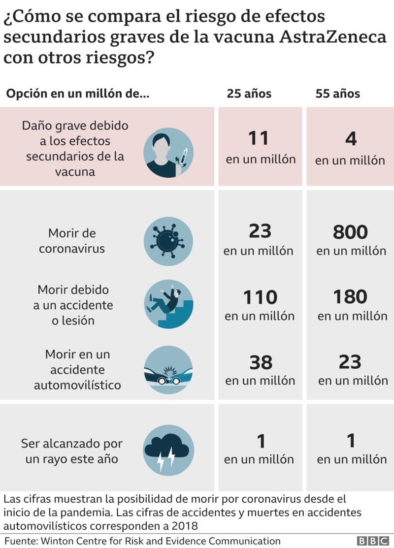 De hecho, las autoridades británicas decidieron que, dado que las personas sanas menores de 30 años tienen menos riesgo de enfermarse gravemente a causa de covid-19, el equilibrio de riesgos y beneficios significa que se les debe ofrecer una vacuna diferente a la de AstraZeneca.