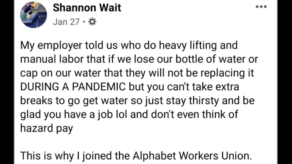 La vasta mayoría de empleados de Google no son miembros, pero Shannon lo era y el sindicato asumió su caso.