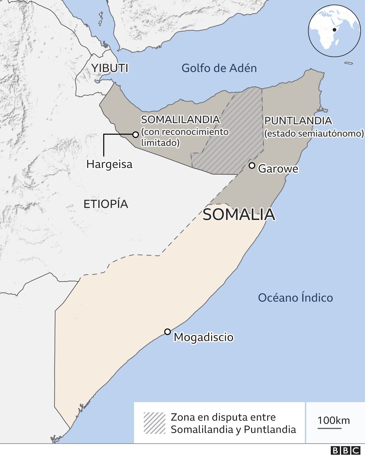 "Tiene sus propias instituciones gubernamentales, pero no cuenta con reconocimiento internacional", resume el periodista Farhan Jimale, del servicio somalí de la BBC.