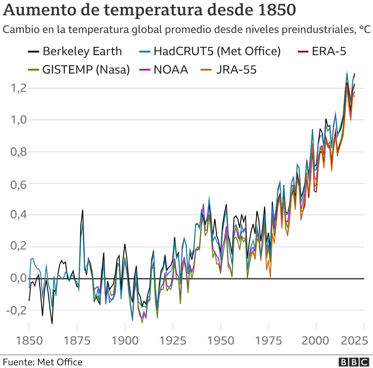Leon Hermanson, científico senior de la Oficina Meteorológica de Reino Unido, dijo a la BBC que al comparar las temperaturas proyectadas con las de 1850-1900 se ve un claro aumento.