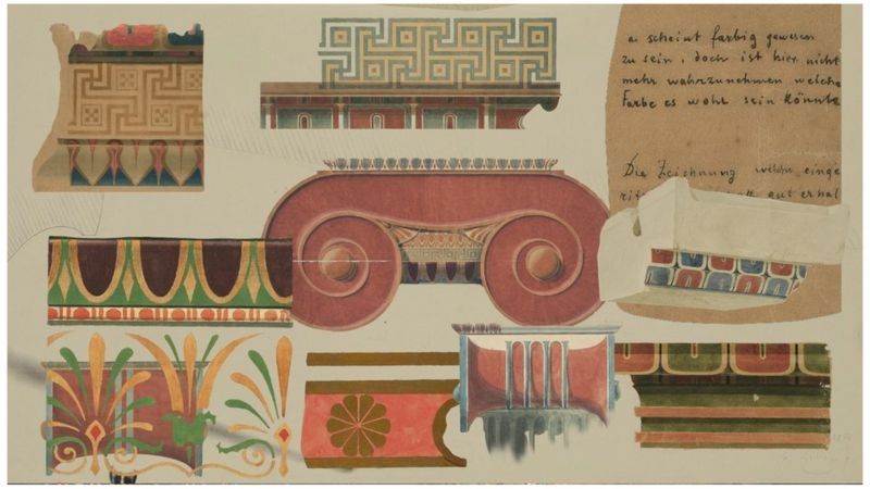 Las nuevas excavaciones del siglo XIX mostraron claramente el uso del color en la Antigüedad. Al respecto, se han publicado estudios de obras antiguas, como los del arquitecto Ernst Ziller.
