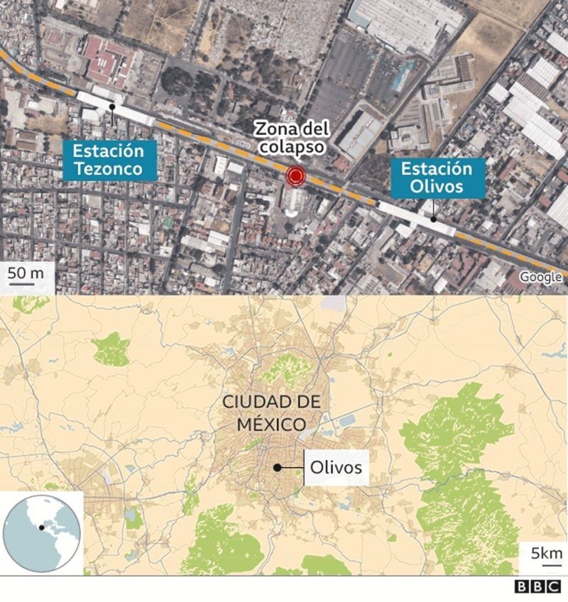 La tragedia se produjo alrededor de las 10:00 pm hora local en el sureste de la metrópolis, en el paso elevado entre las estaciones de Olivos y Tezonco.