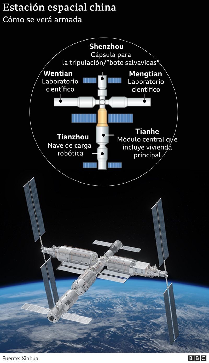 La estación espacial de China se ensamblará a partir de varios módulos que se enviarán en diferentes momentos y se planea tenerla en pleno funcionamiento a fines de 2022.