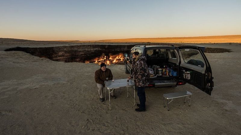 Su resplandor nocturno fascina a los aventureros que se adentran en zonas inhóspitas como el desierto de Karakum, al que no es sencillo llegar.