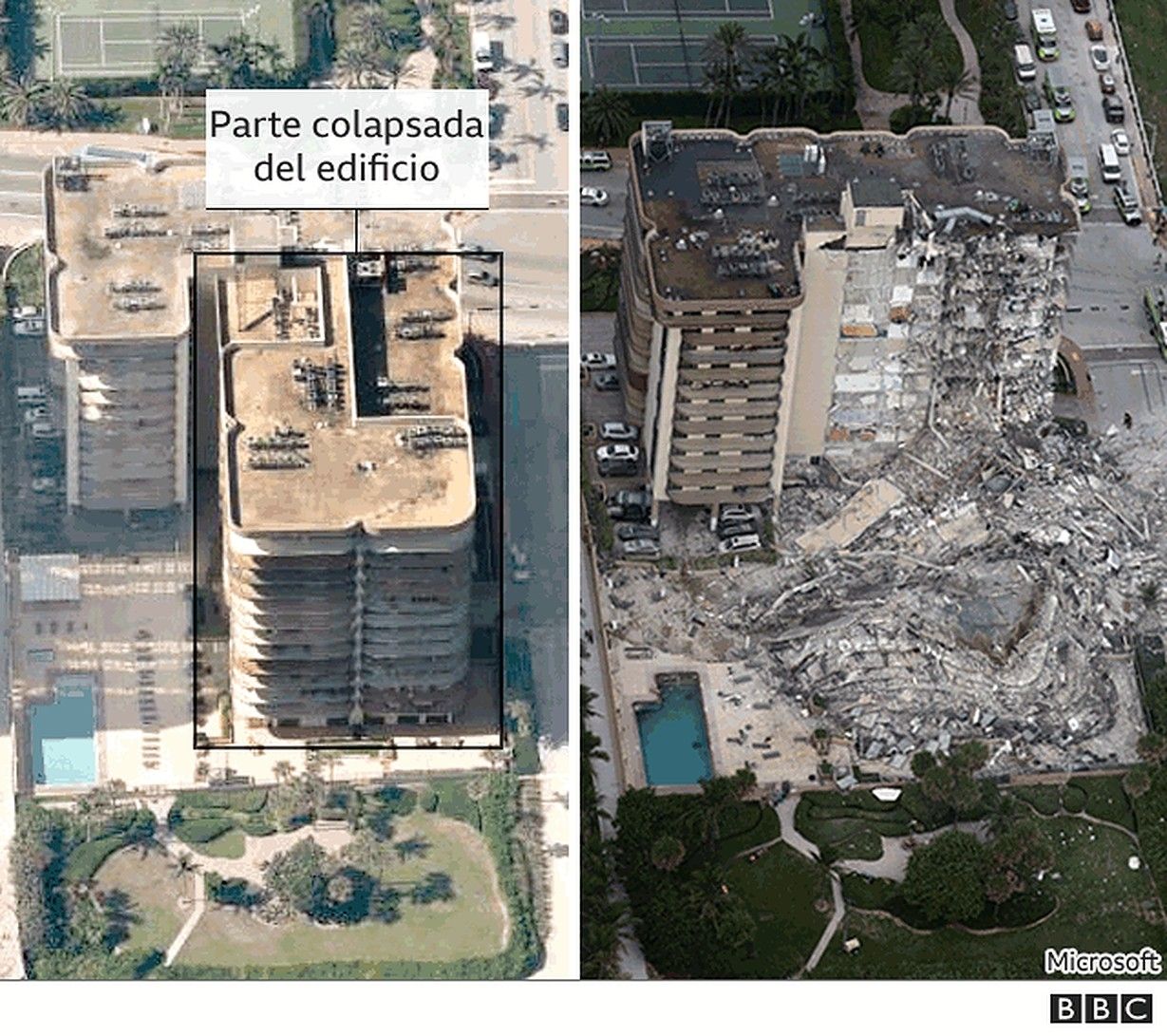 El colapso del Champlain Towers, un condominio de 12 plantas y más de 130 apartamentos frente al mar, tuvo lugar alrededor de las dos de la mañana, hora local.