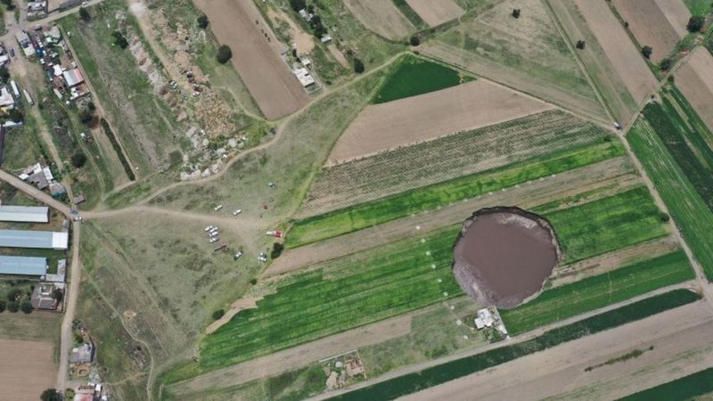 Desde entonces hasta ahora, lo que comenzó como un agujero de 5 metros de diámetro se convirtió en un socavón enorme de 80 metros, con una profundidad de 20.