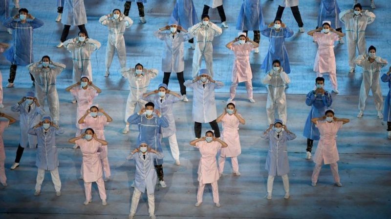 En la plaza de Tiananmen de Pekín asistió una multitud cuidadosamente vigilada, aunque muchos de los asistentes no llevaban máscaras.