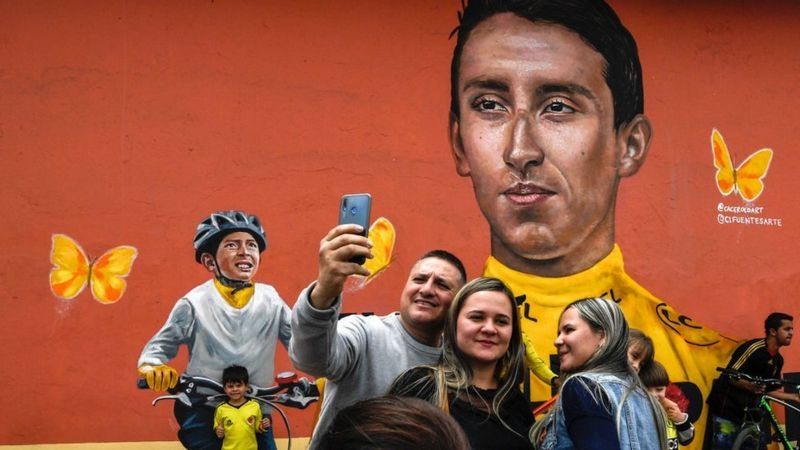 En el pueblo de la infancia de Egan Bernal, Zipaquirá, los artistas Emerson Cáceres "Cacerolo" y Luis Carlos Cifuentes pintaron un mural en 2019 tras el triunfo del ciclista colombiano. El pequeño Julián Esteban Gómez aparece a un lado, llorando de alegría.