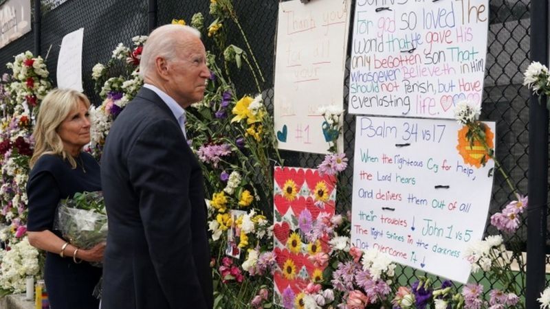El presidente Joe Biden y su esposa Jill visitaron este viernes el memorial en honor a las víctimas de Surfside.