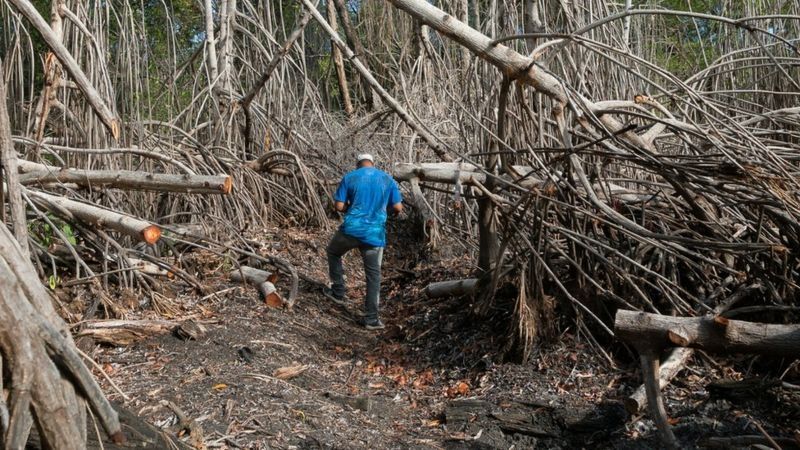 Manglares quemados en Estero Hondo, Puerto Plata, República Dominicana.