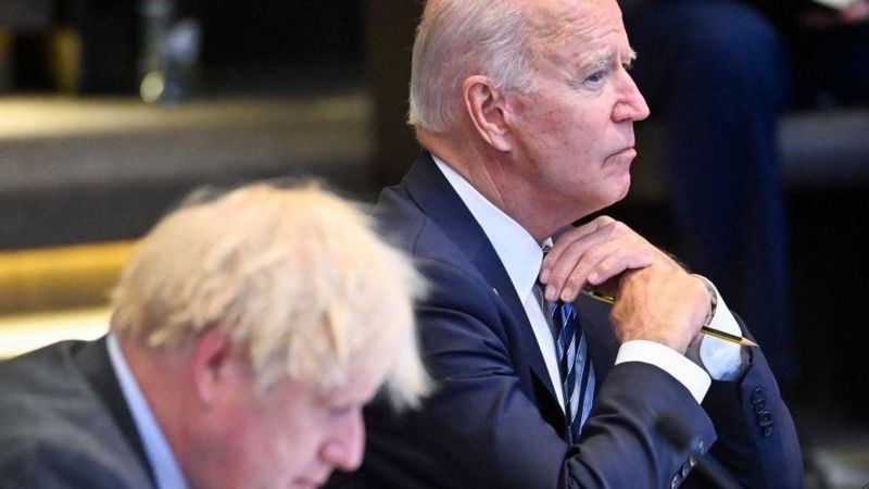El primer ministro británico, Boris Johnson (izq.), solicitará a Joe Biden una extensión de unos días para continuar los operativos de evacuación.
