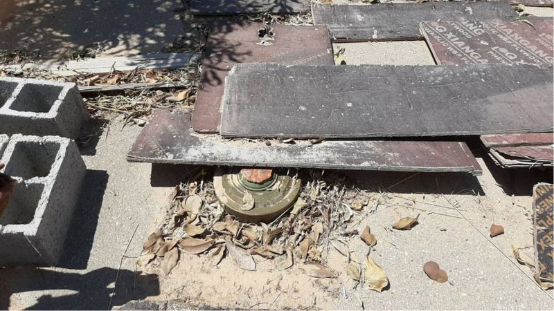 La BBC escuchó testimonios de algunos residentes sobre minas y otros artefactos explosivos instalados en zonas residenciales y ha visto fotos y videos de ellos.