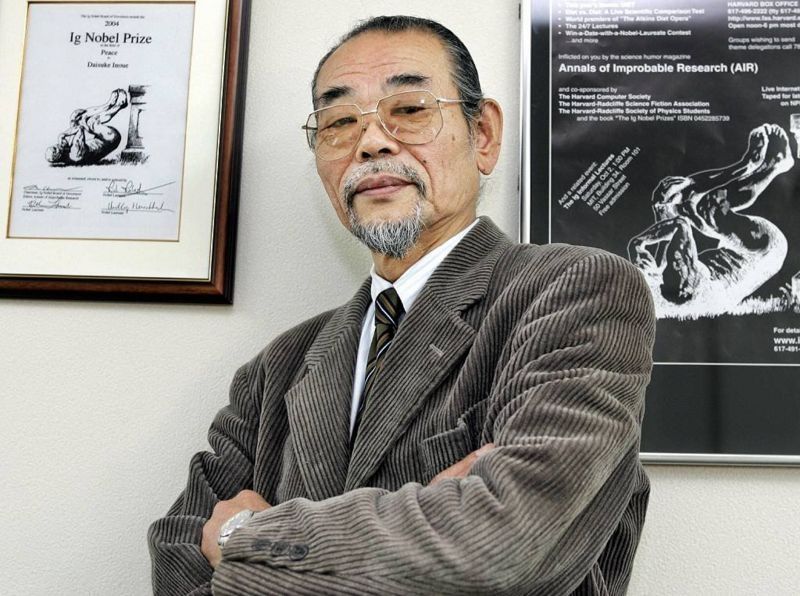 "El Premio Ig Nobel de la Paz se otorga este año a Daisuke Inoue de Hyogo, Japón, por inventar el karaoke, proporcionando así una forma completamente nueva para que las personas aprendan a tolerarse entre sí", dijo el maestro de ceremonias.