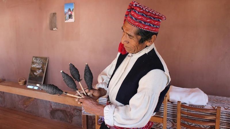 Las mujeres transmiten esta habilidad a sus hijas y nietas, explicó Teodosia. Los cinturones también cumplen una función muy práctica, ya que actúan como soporte de la espalda en el duro trabajo manual de sembrar o esquilar ovejas.