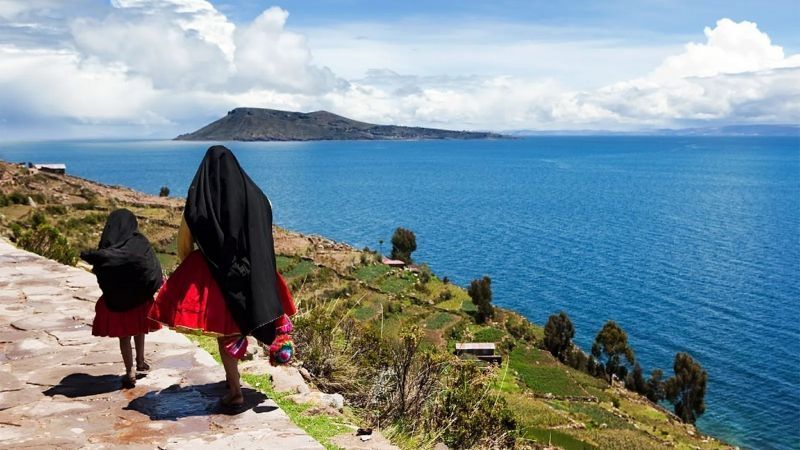 Taquile es famosa por sus textiles y vestimentas. Mientras las mujeres tejen y cuidan a las ovejas que proveen la lana, los hombres son los que producen exclusivamente los sombreros de la isla.