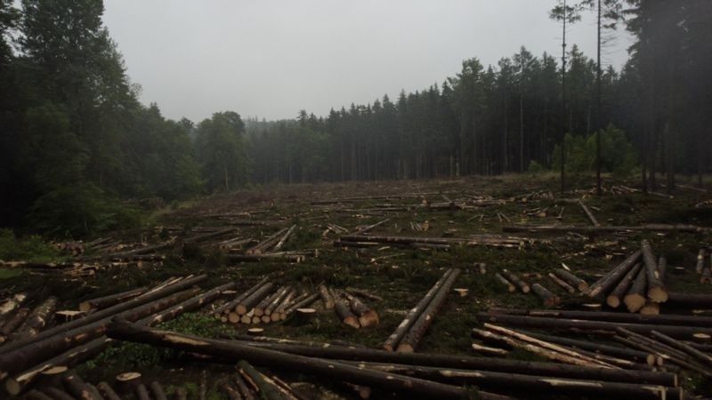 Hans Schattenberg, quien gestiona los bosques en la región oriental de Harz, dice que lo único que él y su personal pueden hacer es talar hectáreas de bosques para intentar reducir la propagación.